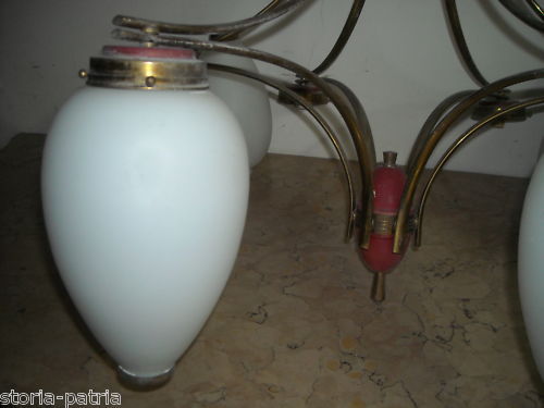 Design, Arti Decorative Del 900, Lampadario d'Epoca, Con Vetri, Era Kalff, Vintage