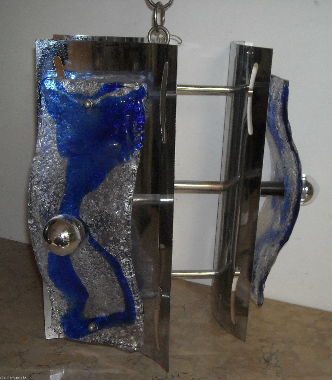 Design, Modernariato, Inusuale Lampadario d'Epoca, Decorativo, Metallo Cromato, Vetri