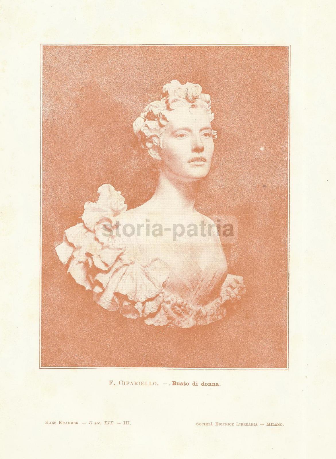 Arte, Scultura, Puglia, Napoli, Filippo Cifariello, Busto Di Donna, Antica Stampa, 900