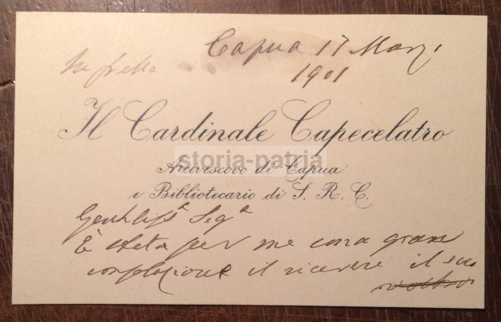 Capua, Cardinale Capecelatro, Antico Biglietto Da Visita, Autografo Da Collezione