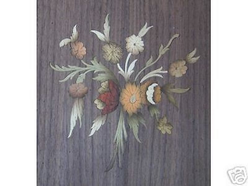Decorativo Pannello Intarsiato, Legni Colorati, Vaso Di Fiori, Da Collezione, Utile