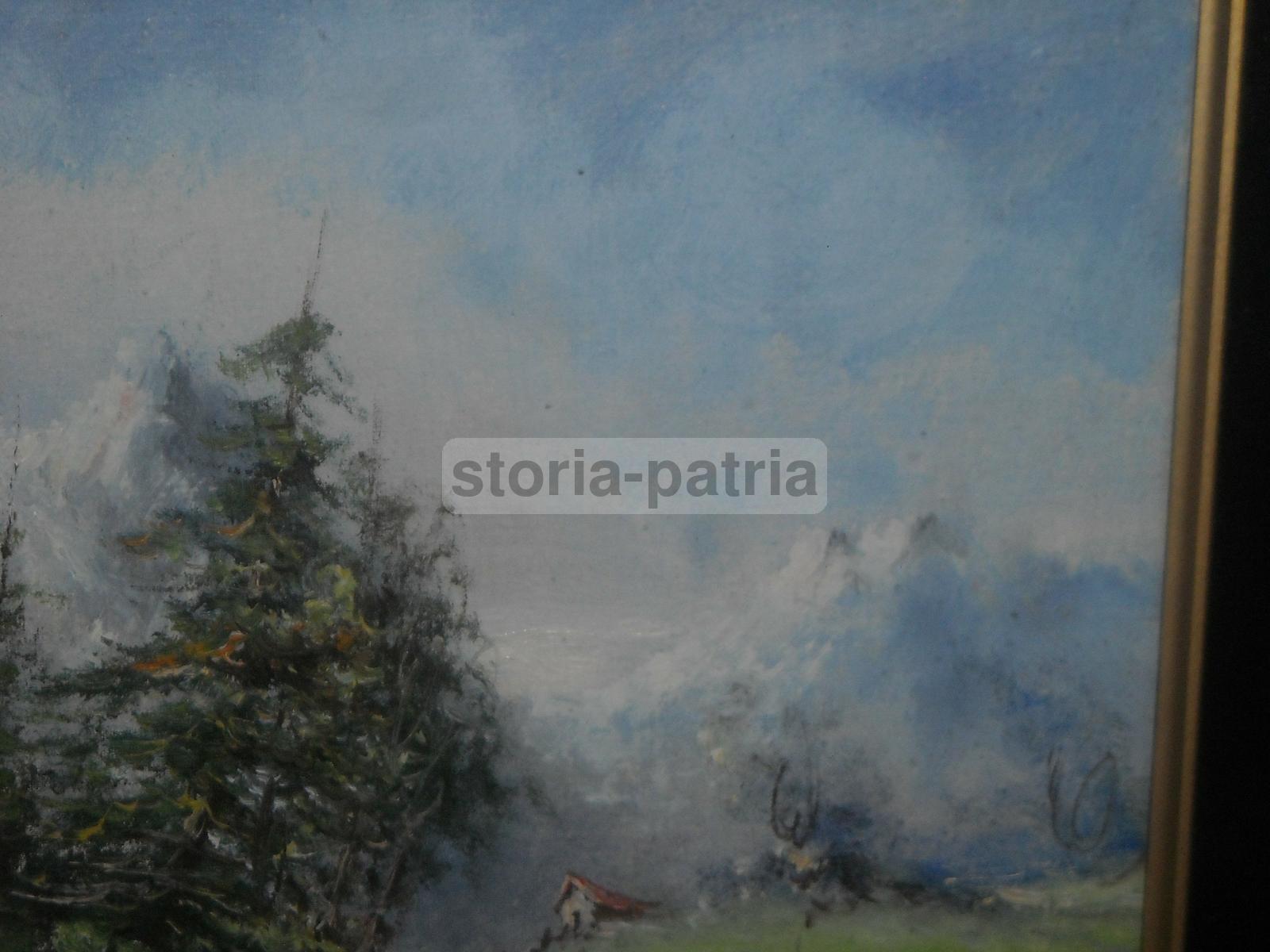 Arte Del Novecento, Paesaggio Di Montagna, Monti Innevati, Baita, Dipinto Firmato